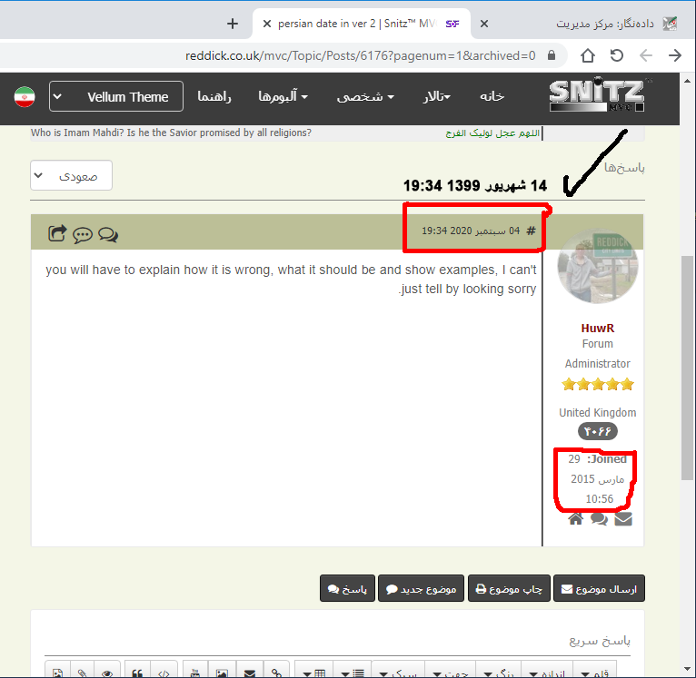 The Perisan date in Persian, which you had previously modified, is broken again.