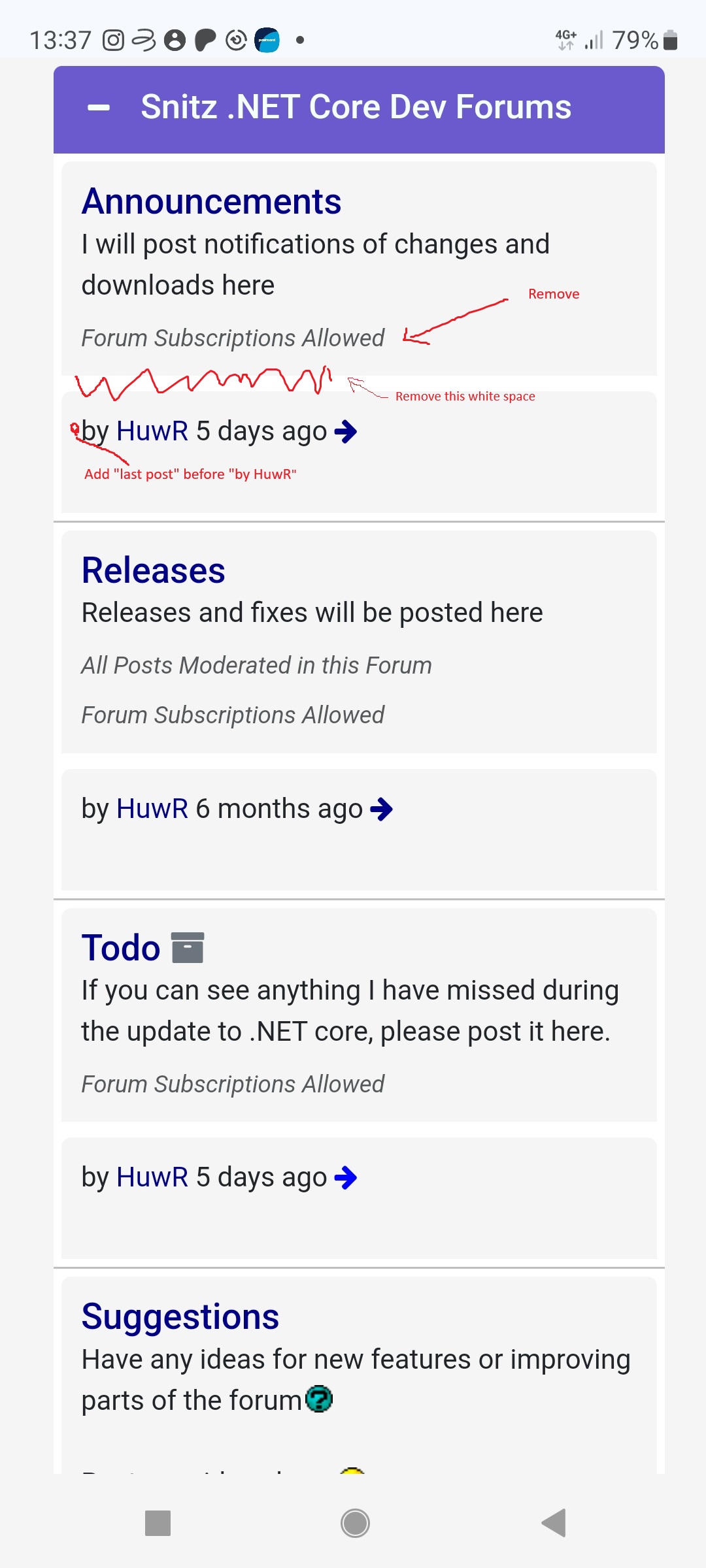 I also think there must be more text then "by Huwr". "Post by" or "Last post by" / "Latest post by" is better